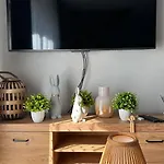 The inner design comes with a sofa, as well as a flat-screen TV with satellite channels. Domki Lubiane Villa also comes with a private bathroom equipped with a separate toilet and a shower.